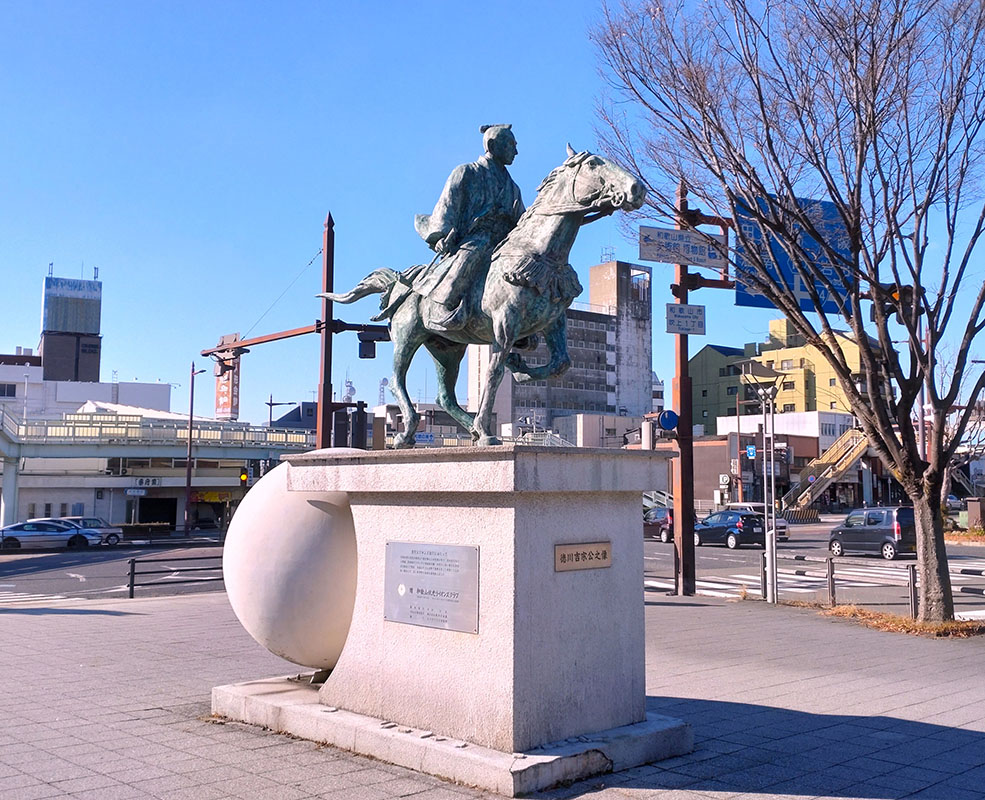 まずは和歌山市、県立近代美術館前にある「徳川吉宗公之像」から。徳川幕府第八代将軍、時代劇では「暴れん坊将軍」として広く知られる吉宗が馬に乗る凛々しい騎馬像です。今にも駆けだしそうな躍動感を感じますよね。