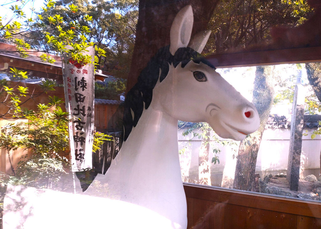近代美術館からほど近い「刺田比古神社」にある白い馬も、吉宗にゆかりがあります。この馬は吉宗最初の任地である越前国鯖江産の名馬で、幼少期からかわいがってていた一頭。同神社の神主はこの馬を神馬として大切にし、馬が天寿を全うした後は面影を木彫の像にうつして大切に保管したと伝承されています。現在の形は平成8年に修復されたもの。開運厄除の神馬として、今もなお人々から崇敬を集めているそうです。