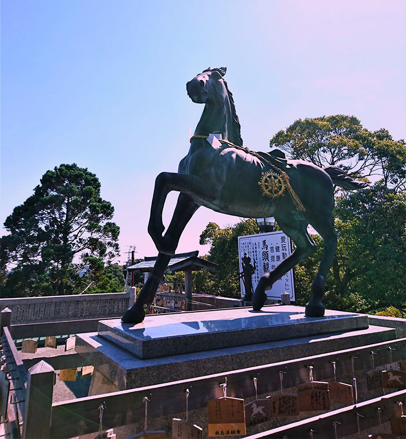 続いて上富田町、約1300年の歴史を持つ県南部で最古・最大の開運・厄除の霊場「救馬渓観音」です。ご本尊は「馬頭観世音菩薩」。病にかかった小栗判官が治療に向かう途中、突然愛馬が病で動けなくなり、この観音に祈願したところ、愛馬は全快し、判官の病も次第に回復しました。この伝承が同観音の名称の由来になっています。。境内には力強さを感じる筋骨隆々の馬像が参拝者を迎えてくれます。