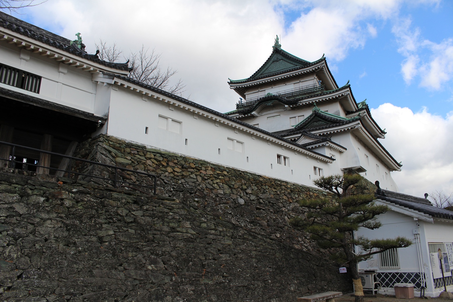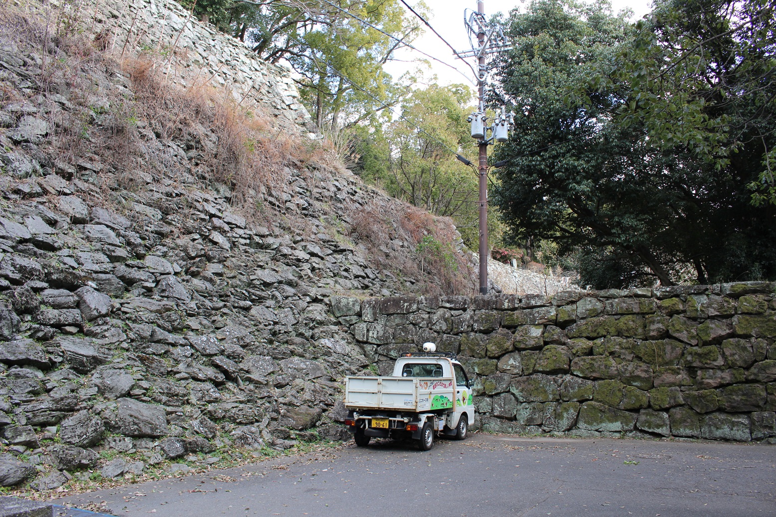 城内駐車場近くの「不明門跡」周辺にある石垣は、豊臣・桑山期の石垣に打込ハギの石垣が後で取り付けられた様子がわかるそうです。
