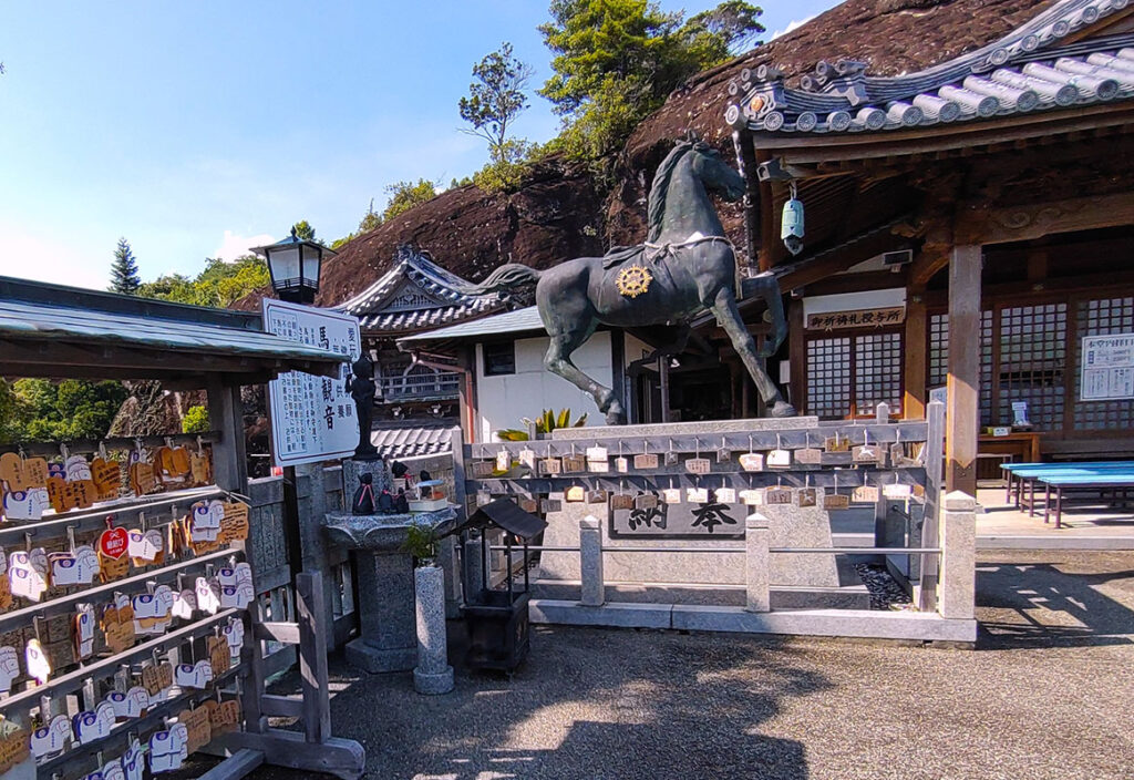 現在、印南町ではかつお節の製造は行われていませんが、印南港近くの公園には「印南漁民顕彰の碑」が建立されています。また町内にある「印定寺」には、かつお節を考案した角屋甚五郎の位牌が祀られています。境内には漁の安全と豊漁を願って建立された観音堂があります。写真は印南町のキャラクター「カッくん」「エルちゃん」と一緒に撮影しました!