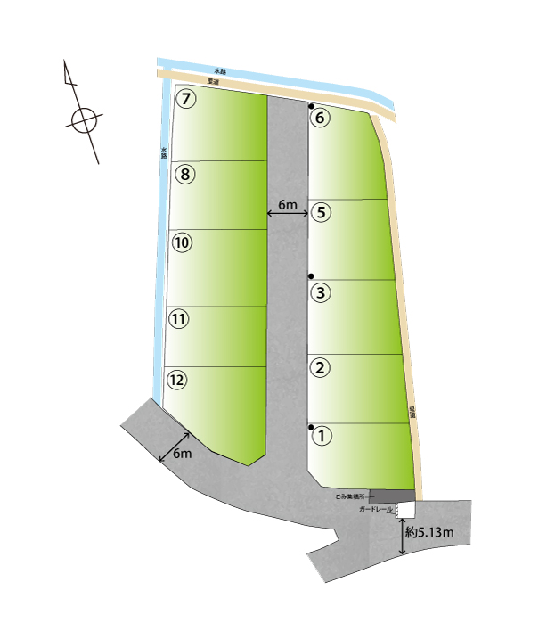 今回販売区画数/10区画 宅地価格/2,136万円~2,401万円 宅地面積/141.79㎡~159.35㎡ ※1号地、12号地は建築条件なしです。 |