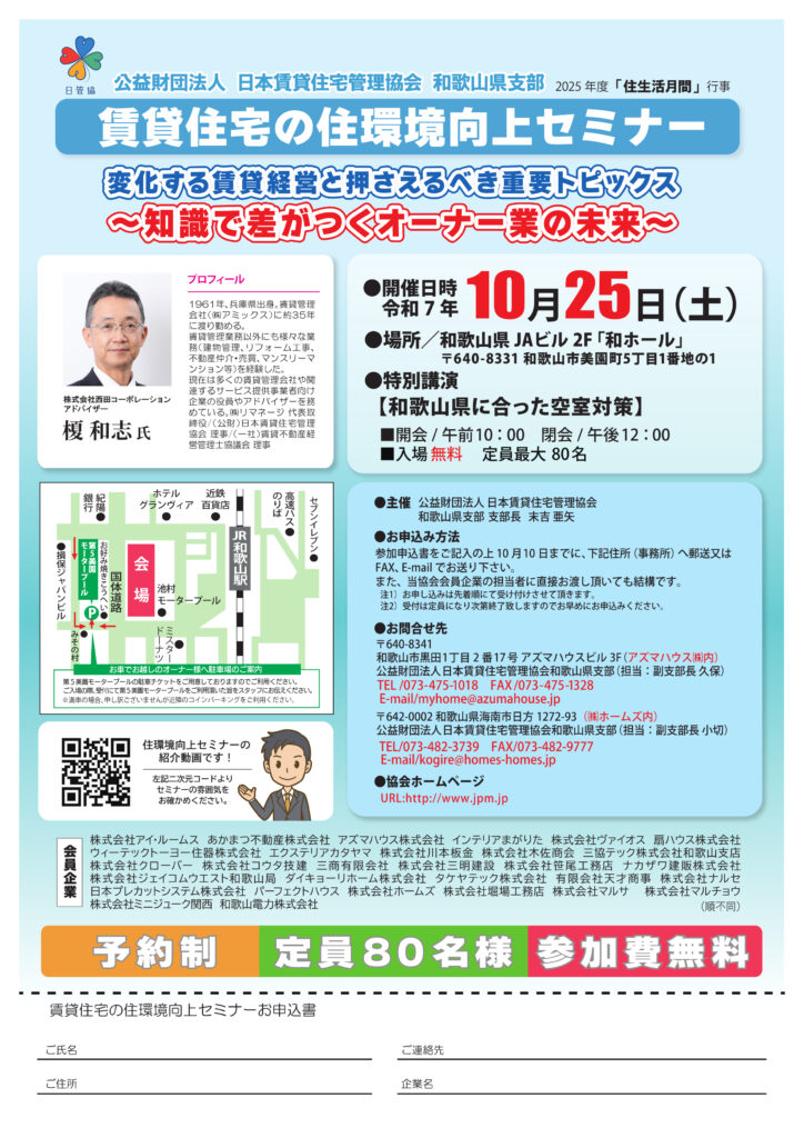 「賃貸住宅の住環境向上セミナー」を開催することとなりました。