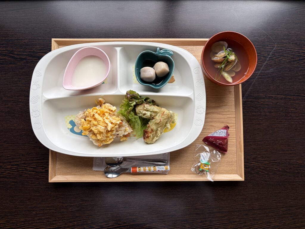 メニューは、「ちらし寿司・あさりのお吸い物・磯辺揚げ・里芋の煮物・パンナコッタ」でした。